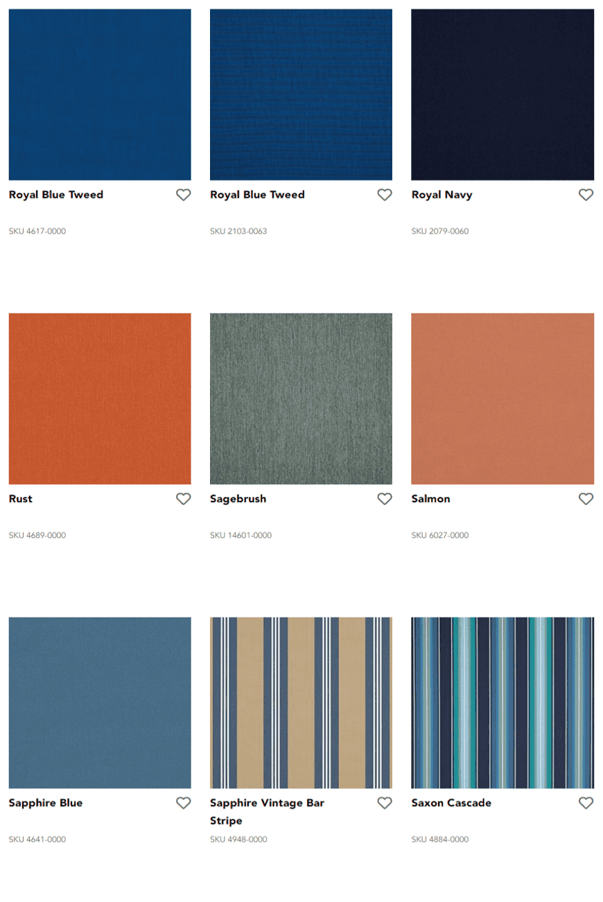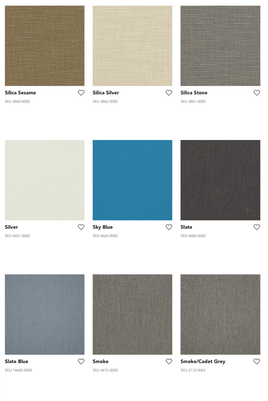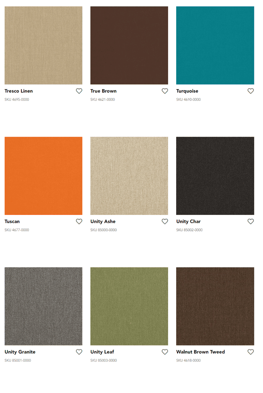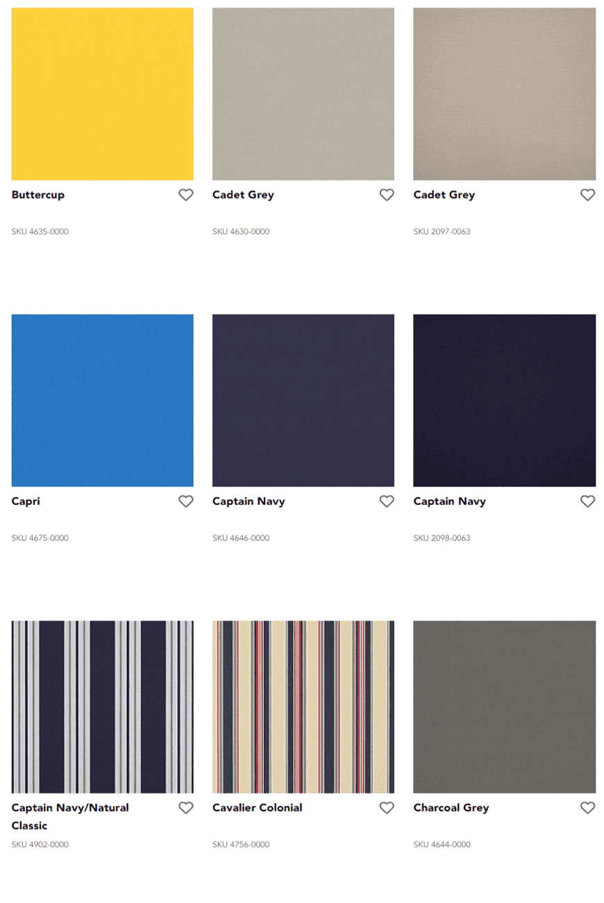 Durable Sunbrella fibers are saturated to the core with color and UV stabilized pigments, ensuring our fabrics won’t fade or become damaged due to the sun’s harsh rays or normal wear. Sunbrella fabrics, unlike ordinary fabrics, are solution-dyed with rich colors that stay brilliant over time no matter the environment.